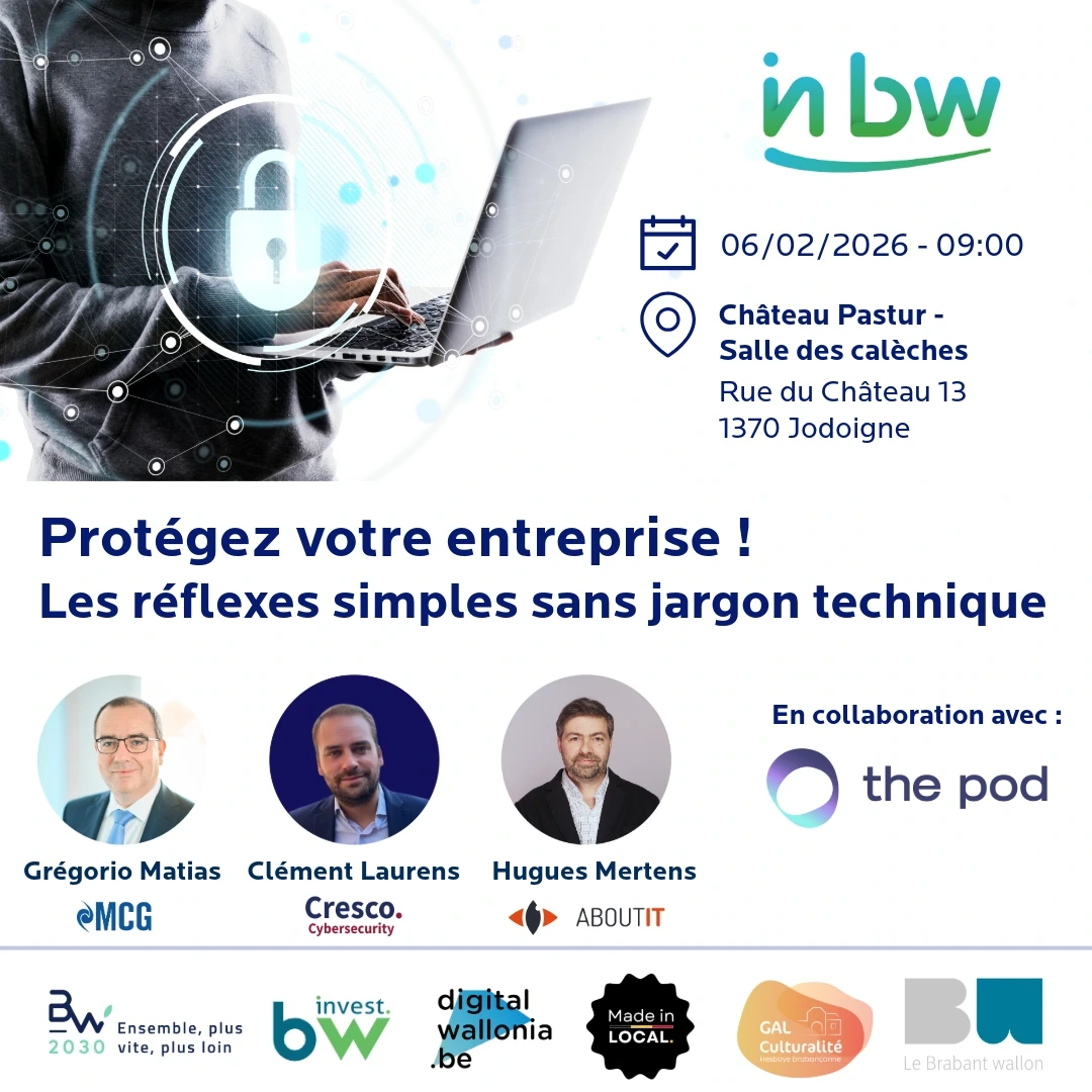 Programme : 09:00 - 09:30 - Accueil café 09:30 - 10:15 : Conf. 1 : Exemple de piratage - simulation de hacking ( via le cloud et sur site) 10:15-11:00 : Conf. 2 : Top 5 des Best Practices pour se protéger contre 80 % des risques 11:00 - 11:30 : Conf. 3 : Témoignage d’une PME locale qui a subi une cyberattaque 11:30 - 13:00 : Lunch Networking